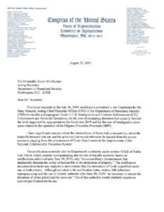 Chairwoman Roybal-Allard Letter to DHS Acting Secretary McAleenan